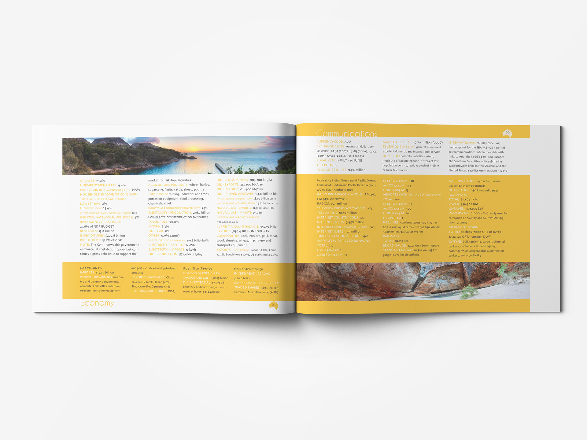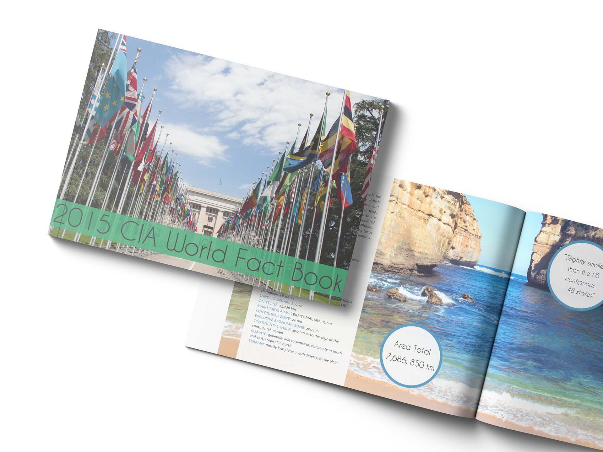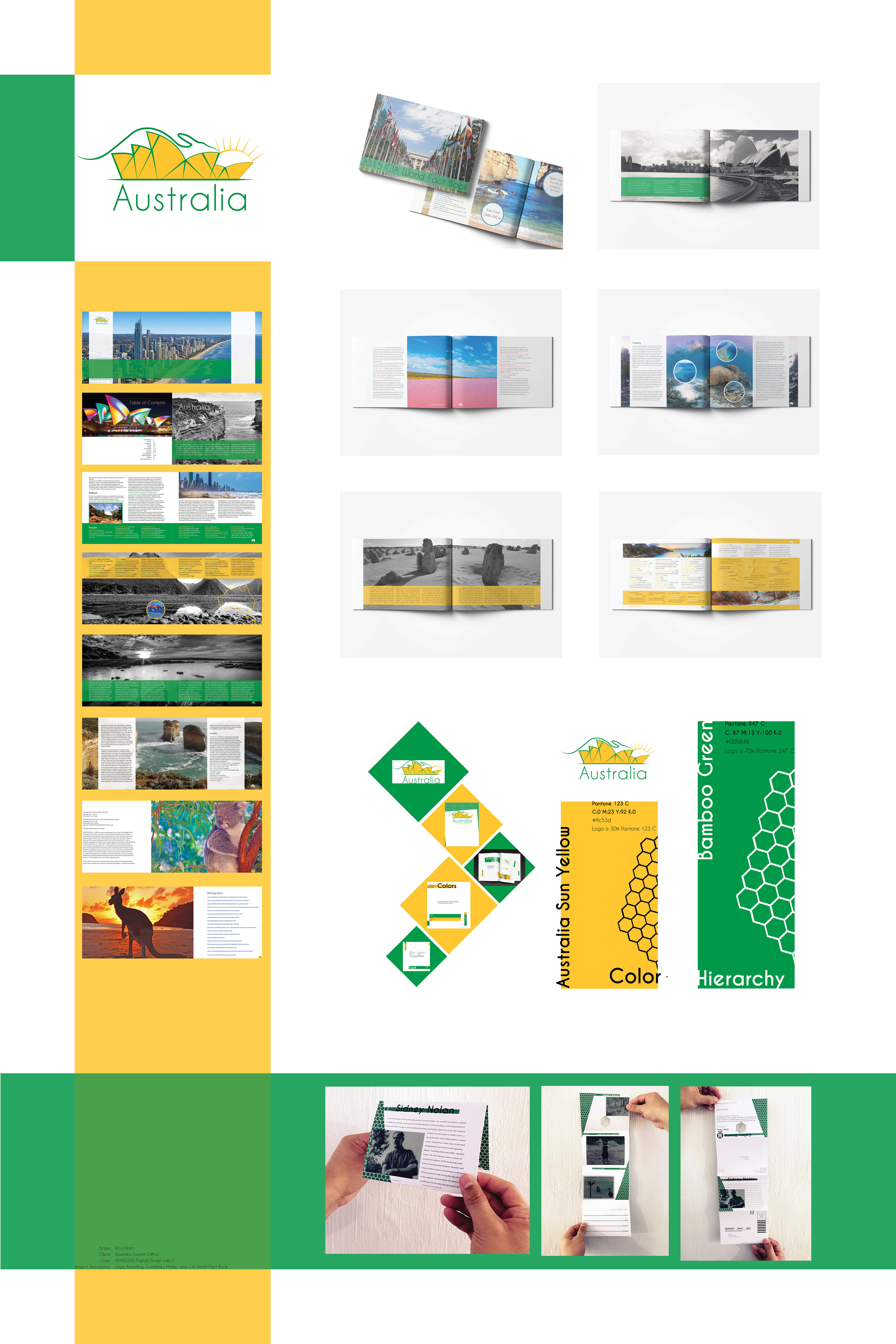 Create Branding for Australia. Includes Brand Guidelines, Mailer, CIA World Fact Book.