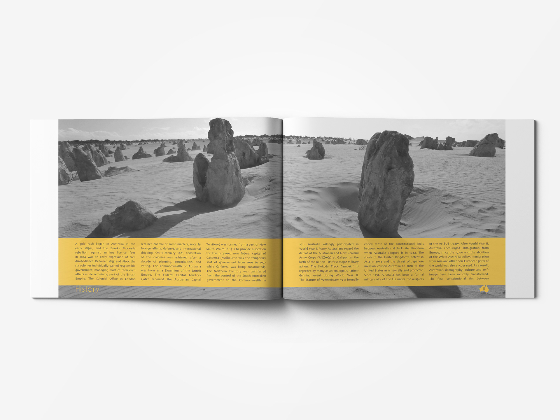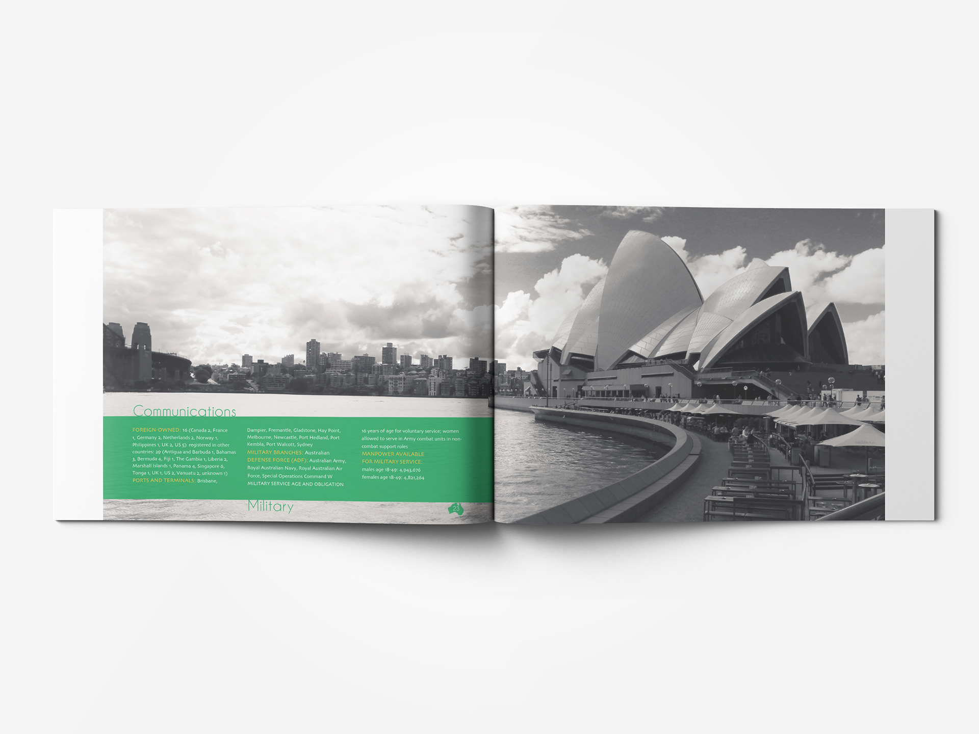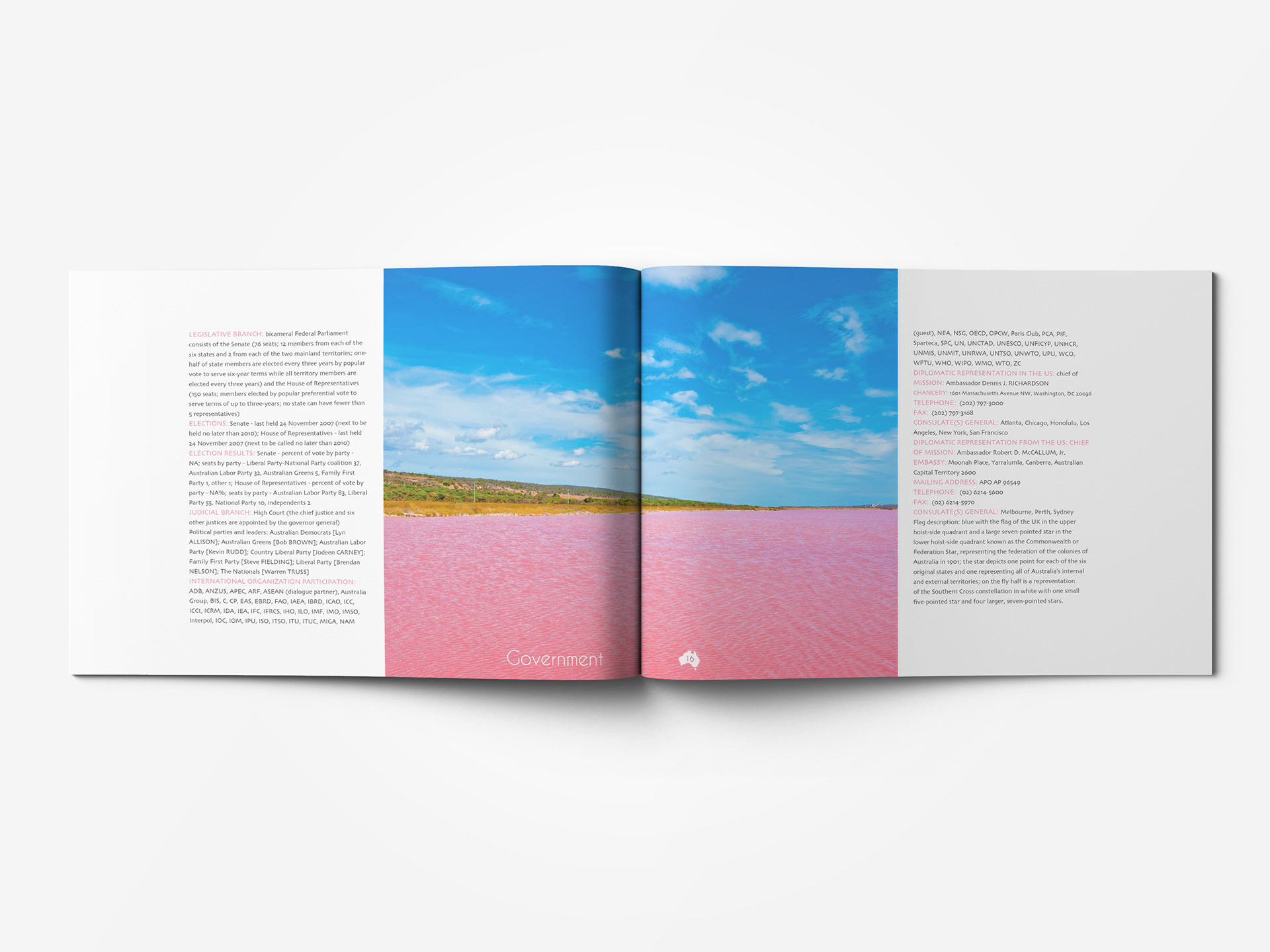 Create Branding for Australia. Includes Brand Guidelines, Mailer, CIA World Fact Book.